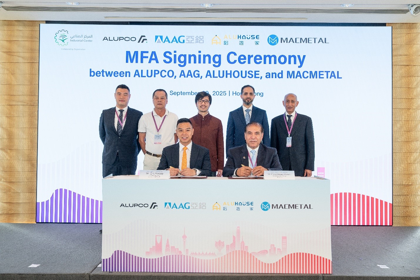 HONG KONG SAR – Media OutReach Newswire – 1 October 2025 – Aluminum Products Company (ALUPCO), an aluminum extrusion producer in Saudi Arabia and Asia Aluminum Group (AAG), a leading Hong Kong aluminum extrusion manufacturer with a production base in Mainland China, signed an agreement on September 29 in Hong Kong. The partnership will form three joint ventures, including AAG member companies AluHouse and MacMetal, With a total investment of up to US$500 million, the companies will build the largest integrated downstream aluminum industrial base in Saudi Arabia, focusing on aluminum extrusion, modular housing, and solar panel frames.